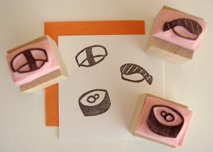 Stamps, stamps, stamps! You can jazz up anything with a stamp.And what better stamp than a kawaii hand-carved one? And