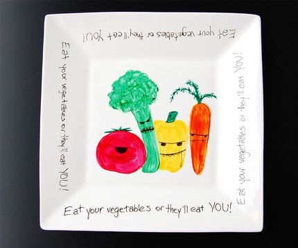 The mugs and plates are hand drawn with a variety of cute but scary things – the angry vegetables and evil bunnies are my favourites. Check out more at Etsy.