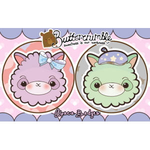 Buttercrumble are two sisters, Chloe and Abigail, who design kawaii paper goods. Based in Yorkshire, England, they have created letter sets, prints and badges cute enough to squee over.
